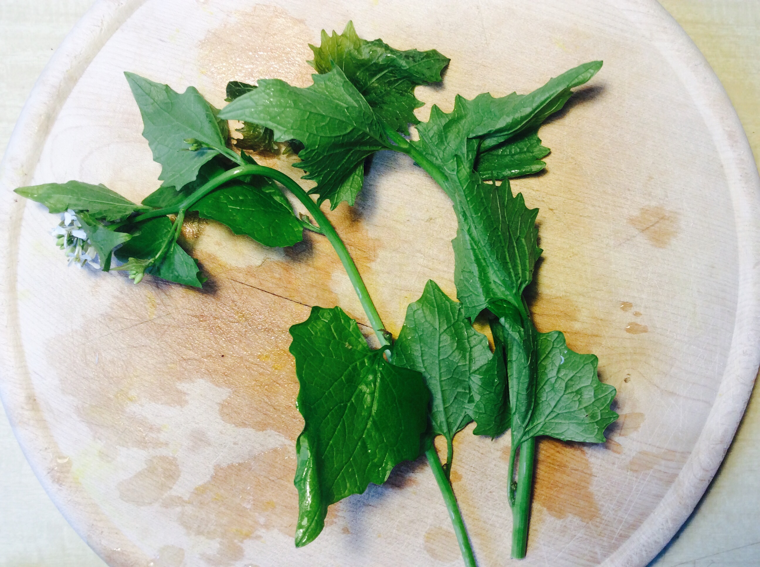 Knoblauchrauke. Leicht erkennbar an den weißen Blümchen.