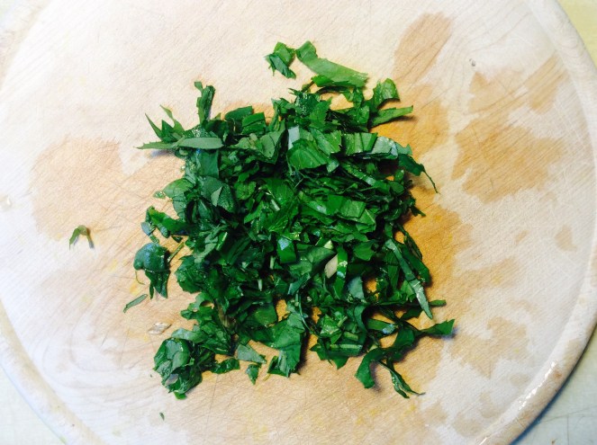 - Wildkräuter (ich nehme Giersch und Knoblauchrauke), klein gehackt