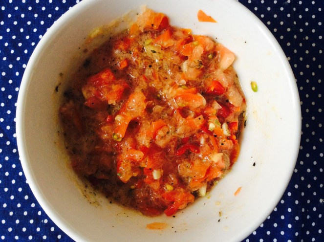 Als erstes machst Du die Tomatensalsa, damit diese durchziehen kann und somit noch besser schmeckt.