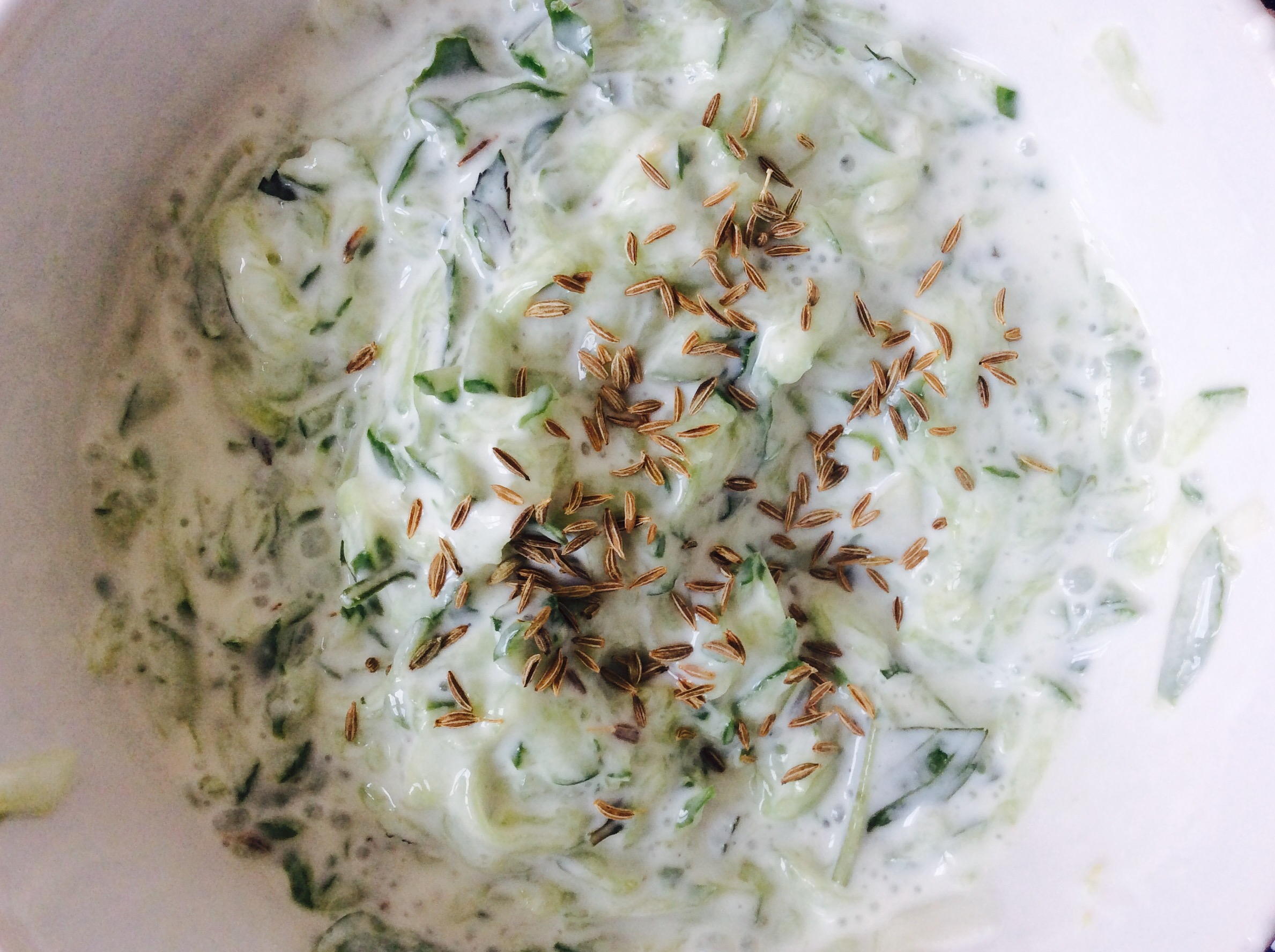 Die Gurkenraita kannst Du natürlich auch weglassen, sorgt aber für den Extra-Frischekick. Und auf die fünf Minuten kommt es nun auch nicht mehr an.